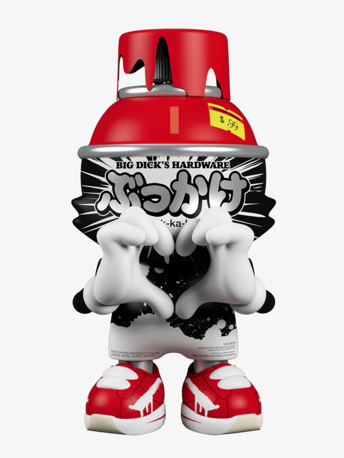Created by the legendary LA graffiti artist OG Slick, Love Red is the first new toy of a five-part series. Finished in SUPERPLASTIC soft vinyl, this limited edition piece features Slick’s signature hands full of love and a removable cap that reveals an electroplated silver chrome spray nozzle. Shake to hear the real rattle sound.